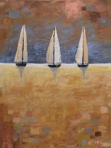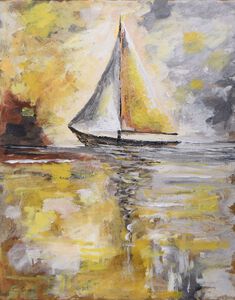 20253 zeilboten in goud en zilverkleurig landschap