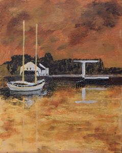2025Zeilboot in avond zon, geïnspireerd door zeiltocht over de Loosdrechtseplassen.